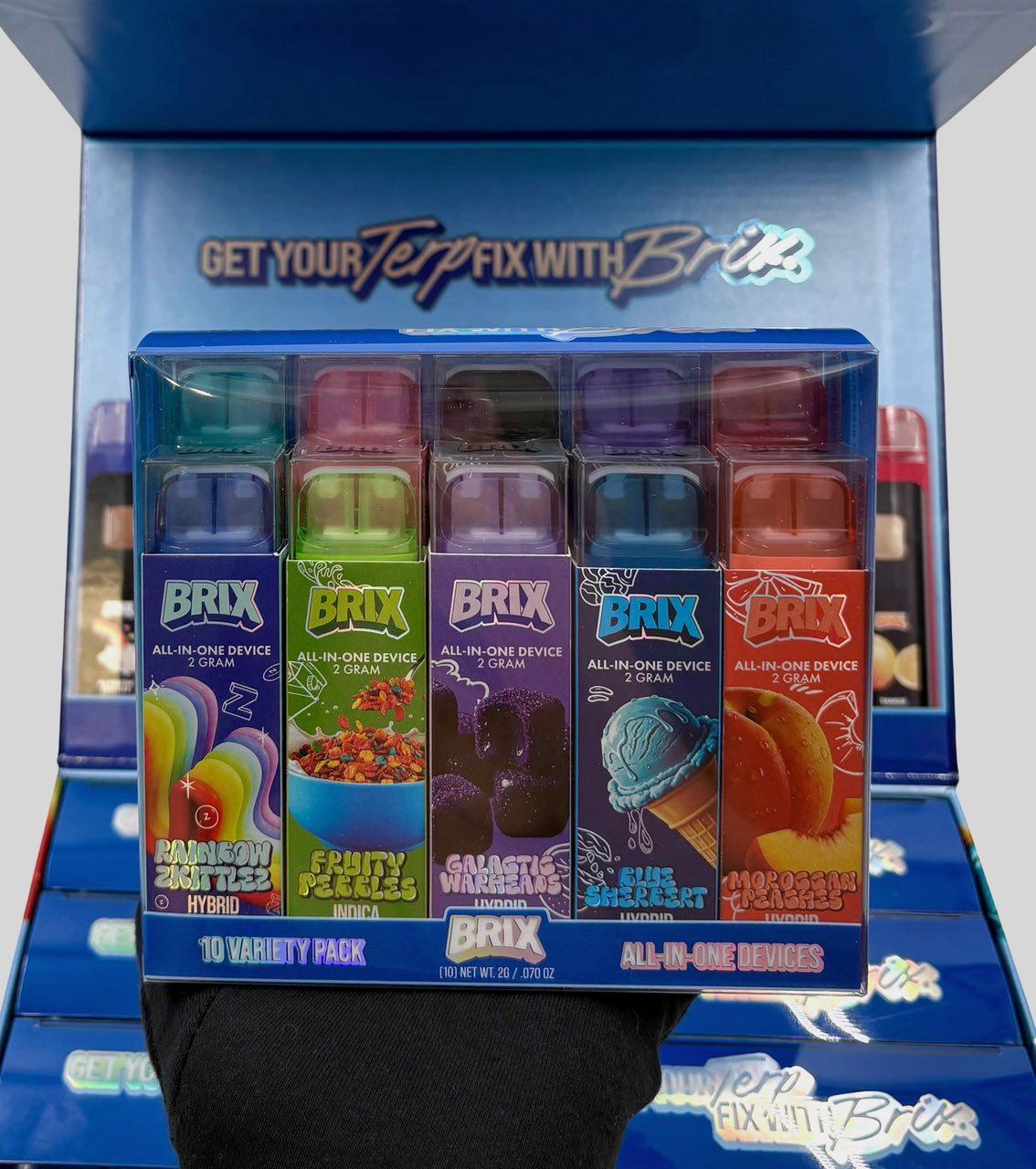 The Brix disposable vape line has a wide spectrum of strains and flavors, from fruity and sweet to earthy and strong.