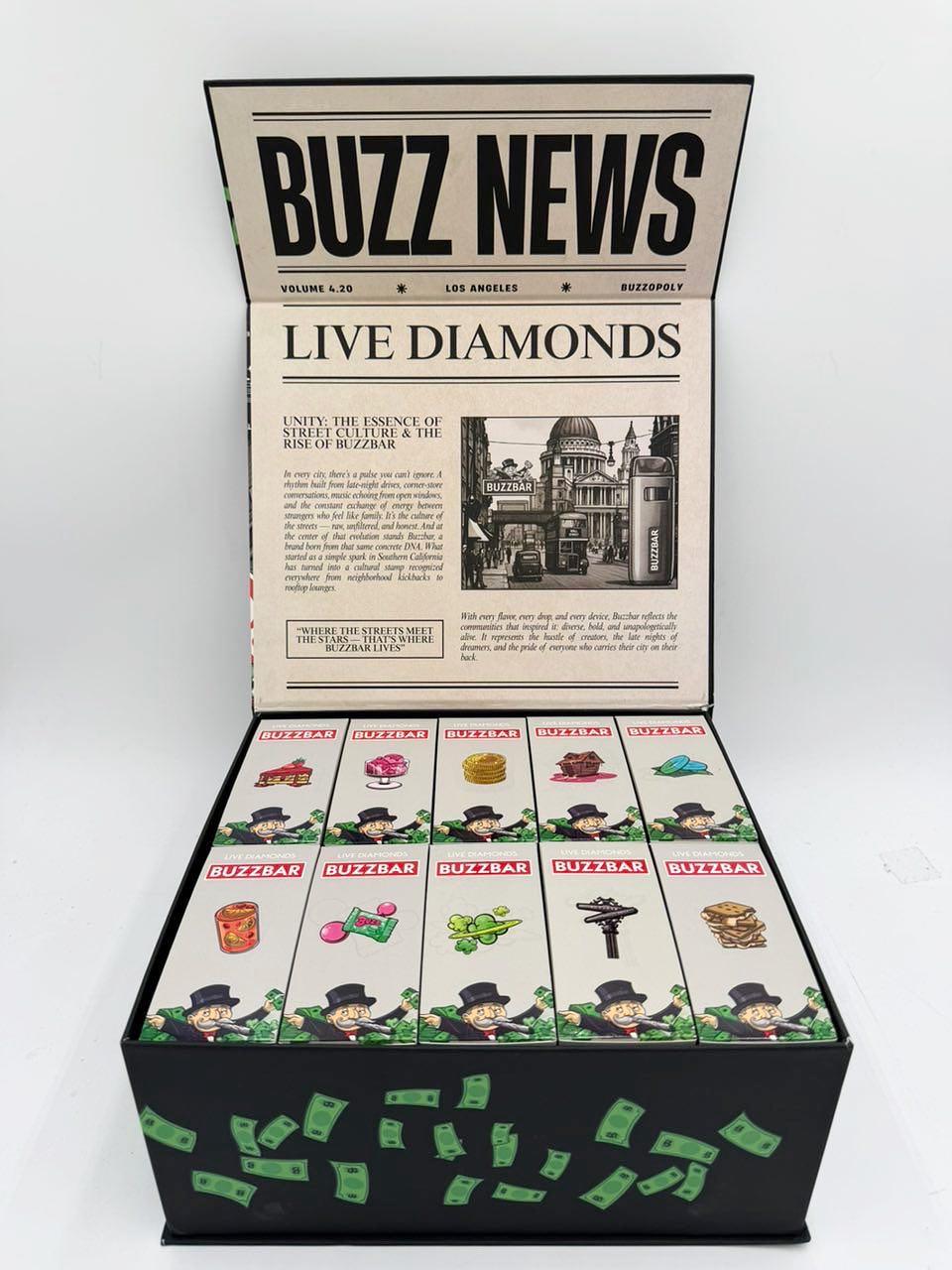 The Buzz Bar 3G Disposable Vape has a 3 g capacity, two chambers, solventless hash rosin, USB-C charging, and an LED display. It gives you smooth, strong, and tasty vapor in a compact, portable gadget.